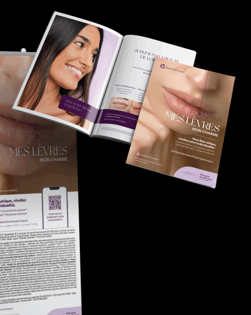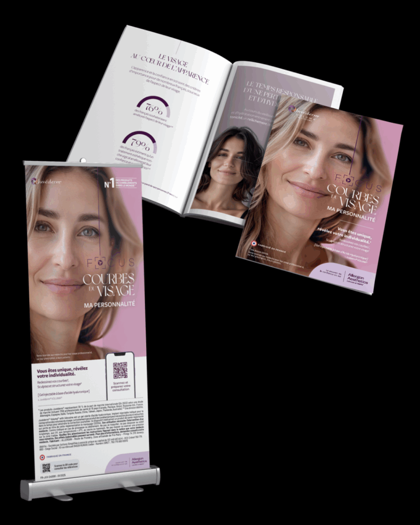 Le groupe Karma Communication et ses agences spécialisées en santé, agence Karma Santé Beauté, Karma Medical and Beauty, est fier de présenter la campagne Focus conçue avec Juvéderm (Allergan Aesthetics) : un dispositif de communication 360° alliant direction de création, identité visuelle, print & PLV (affiches, brochures, roll-ups, présentations) et contenus pédagogiques conformes, déclinés pour les temps forts (congrès, cabinet) afin d’offrir une expérience élégante, lisible et parfaitement alignée avec les exigences médico-réglementaires.